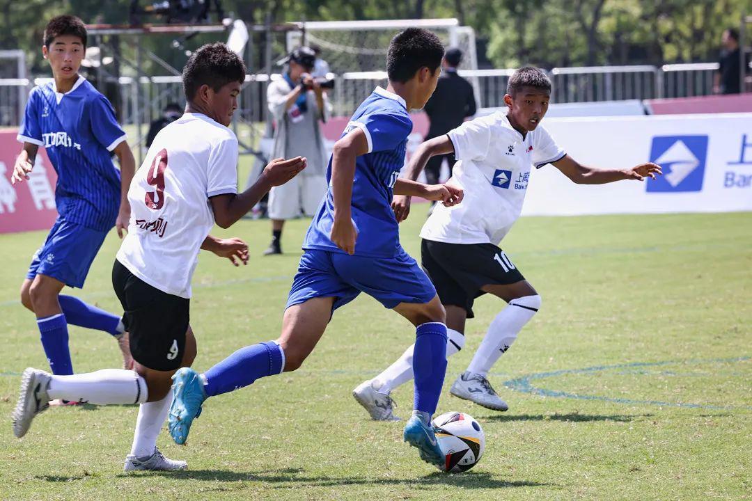 总决赛开始前,拉孜中学队还与杨浦区男子U15队进行了一场友谊赛。友谊赛赛场,藏汉双语的加油声此起彼伏,高原耐力与灵巧传切相互碰撞,相得益彰。终场哨响,两队队员握手、鞠躬,镜头定格下最动人的画面:藏族少年与汉族队友紧握的手掌上,是同样的拼搏印记。
