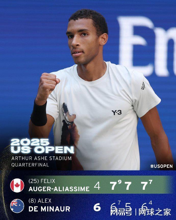接下来,他将与加拿大名将阿利亚西姆争夺决赛入场券,后者以4-6 7-6(7) 7-5 7-6(4)逆转8号种子、澳洲小野兔德米纳尔,继2021年之后再进美网四强。而德米纳尔,则是六进大满贯八强都未能更进一步,成为十次大满贯“卡八”专业户俄罗斯名将卢布列夫的难兄难弟。