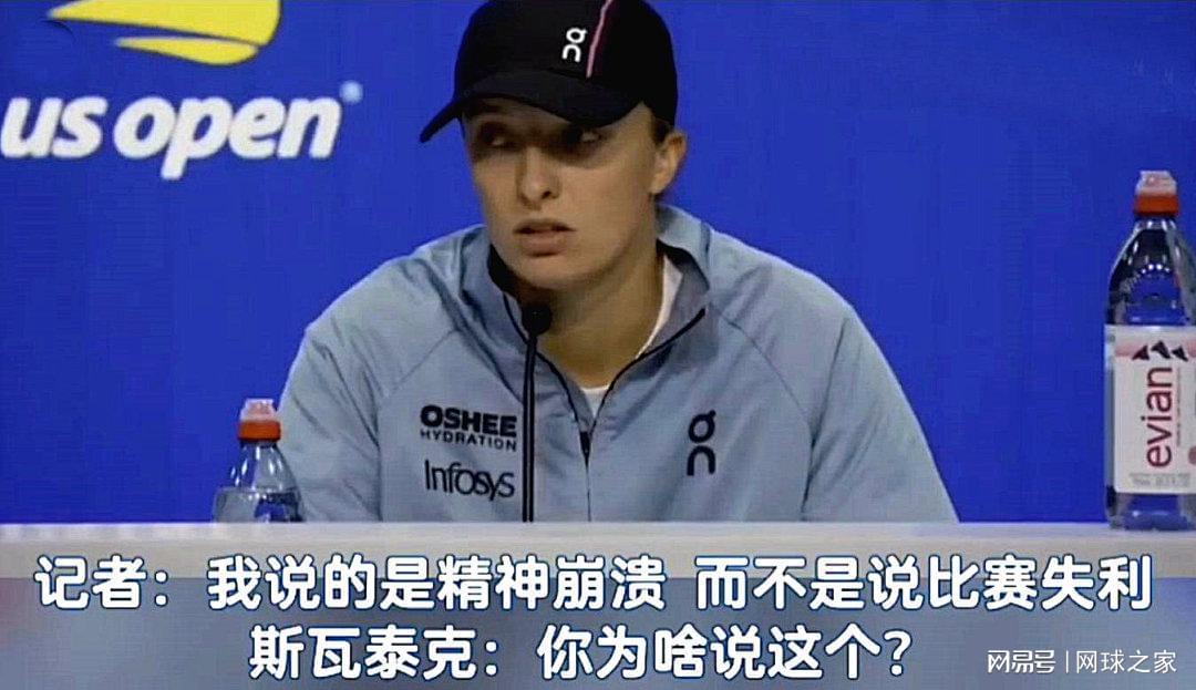 而输掉八强战的斯瓦泰克在赛后的发布会上遭到记者的逼问,愤而反击。这名记者问斯瓦泰克是否感觉精神崩溃,是否需要休息?而斯瓦泰克直接回怼“你为什么这么说?”并反问这位记者是否他精神崩溃了,崩溃了就不该在这里。看来对于这场失利,斯瓦泰克是很难过和郁闷的,心里憋着一肚子火无处发泄,正好这位记者不识趣撞到了枪口上。